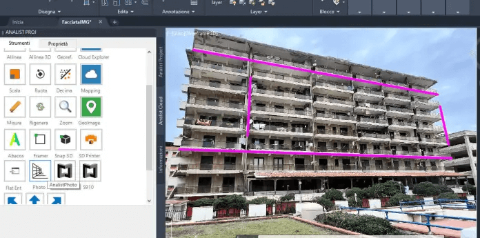 AnalistPhoto è il modulo di Analist CLOUD per la correzione prospettica delle immagini relativo al disegno di facciate.